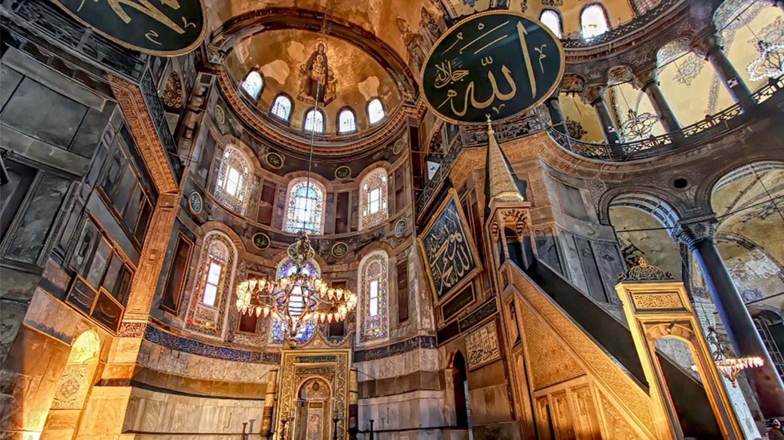Around 1453, a new group came up who were called “Ottomans,” and they took over the entire city. Their leader, Sultan Mehmed II, got so impressed by the building that he turned it into a mosque. While the existing Christian symbols were covered up, new Islamic art was added, which includes the giant circles with beautiful writing.
