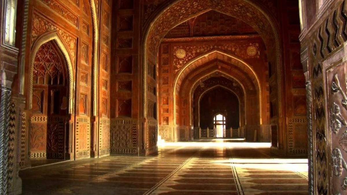 The Taj Mahal is famous for its “changing tones,” dictated by the position of the sun and moon. As it is constructed from high-quality translucent marble from Makrana, the building absorbs and reflects the shifting light of the sky.