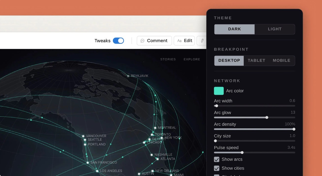 After finishing with your first draft, you don't need to manually edit pixels. You can avail “custom sliders,” generated by Claude specifically for your project, inline comments or just keep refining spacing, colors and layout.
