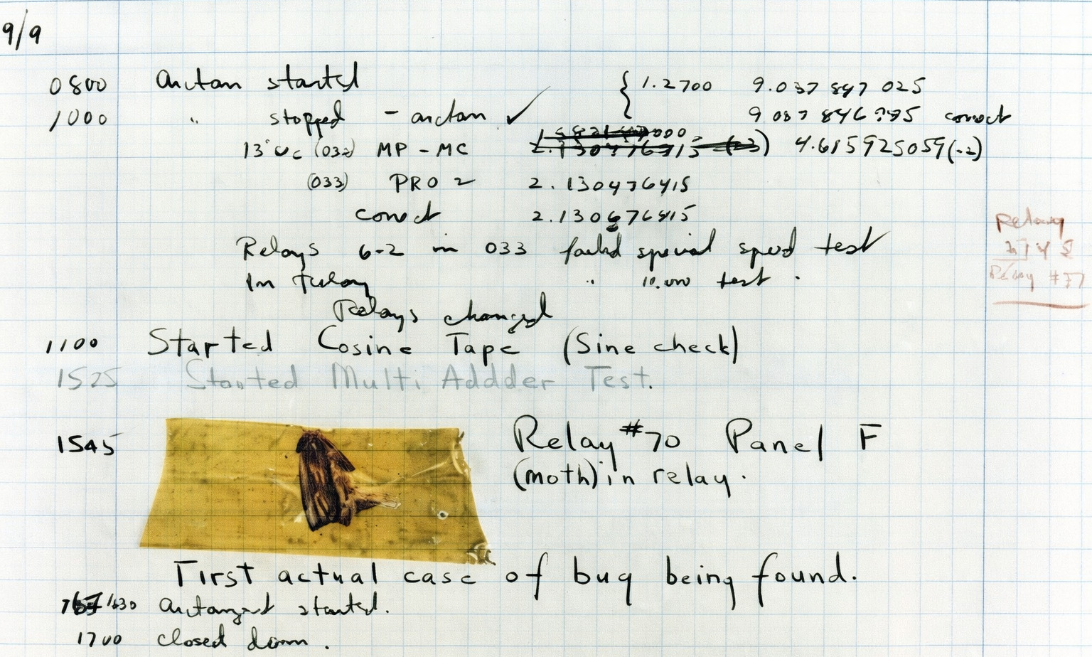 On the afternoon of September 9, 1947, engineers working on the Harvard Mark II encountered a malfunction while the machine was running. Upon careful inspection, they discovered that a moth had become trapped inside one of the machine’s relays, specifically Relay #70 on Panel F.