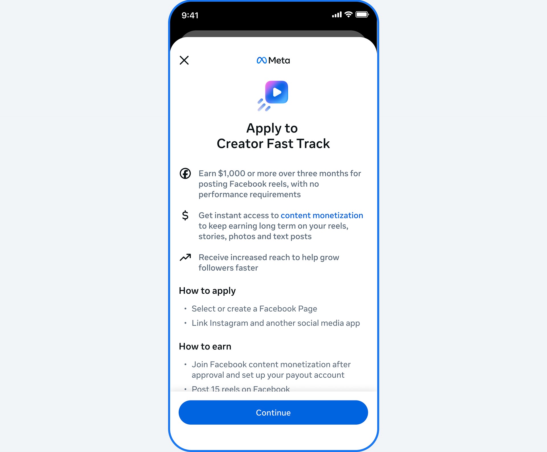 Creator Fast Track is a three-month program launched by Meta to help creators who already have an established audience on other social media platforms quickly build a presence on Facebook. The program focuses on creators who may be new to Facebook or who have not been actively posting content on the platform but have gained popularity elsewhere. Through Creator Fast Track, Meta provides support that allows these creators to grow their audience more quickly by increasing the reach of their content, especially Facebook Reels. The program also provides guaranteed monthly payments and immediate access to Facebook’s monetization tools, allowing creators to start earning money sooner than they normally would. By combining financial incentives with improved content distribution, the program aims to help creators successfully transition their content and audiences to Facebook.