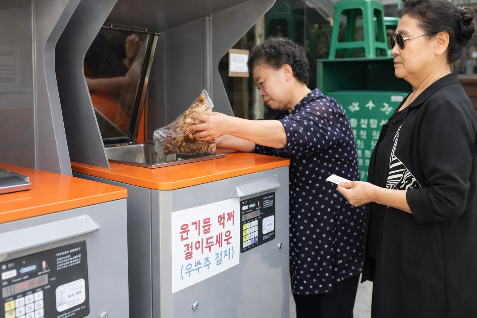 Residents use identification cards to access the bins, and the system automatically weighs the deposited food waste. Disposal fees are calculated based on the exact weight under a pay-as-you-throw model.