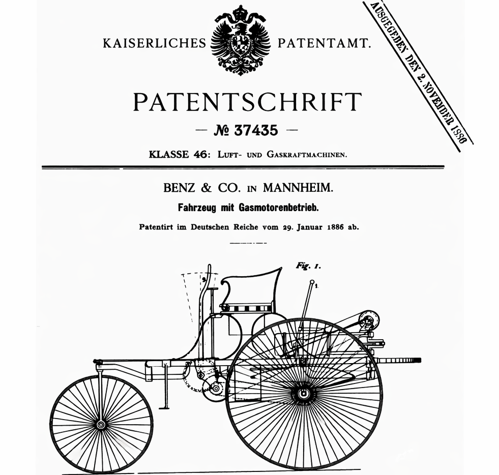 Karl Benz officially patented his invention on 29 January 1886. The patent was titled “Vehicle powered by a gas engine” and was assigned the number DRP 37435. This patent is often called the birth certificate of the automobile.
